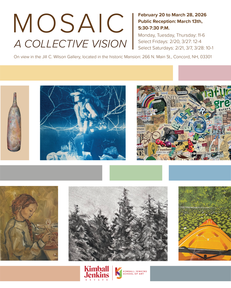 Kimball Jenkins presents Mosaic, A Collective Vision, an exhibition celebrating the teaching and studio artists of Kimball Jenkins.